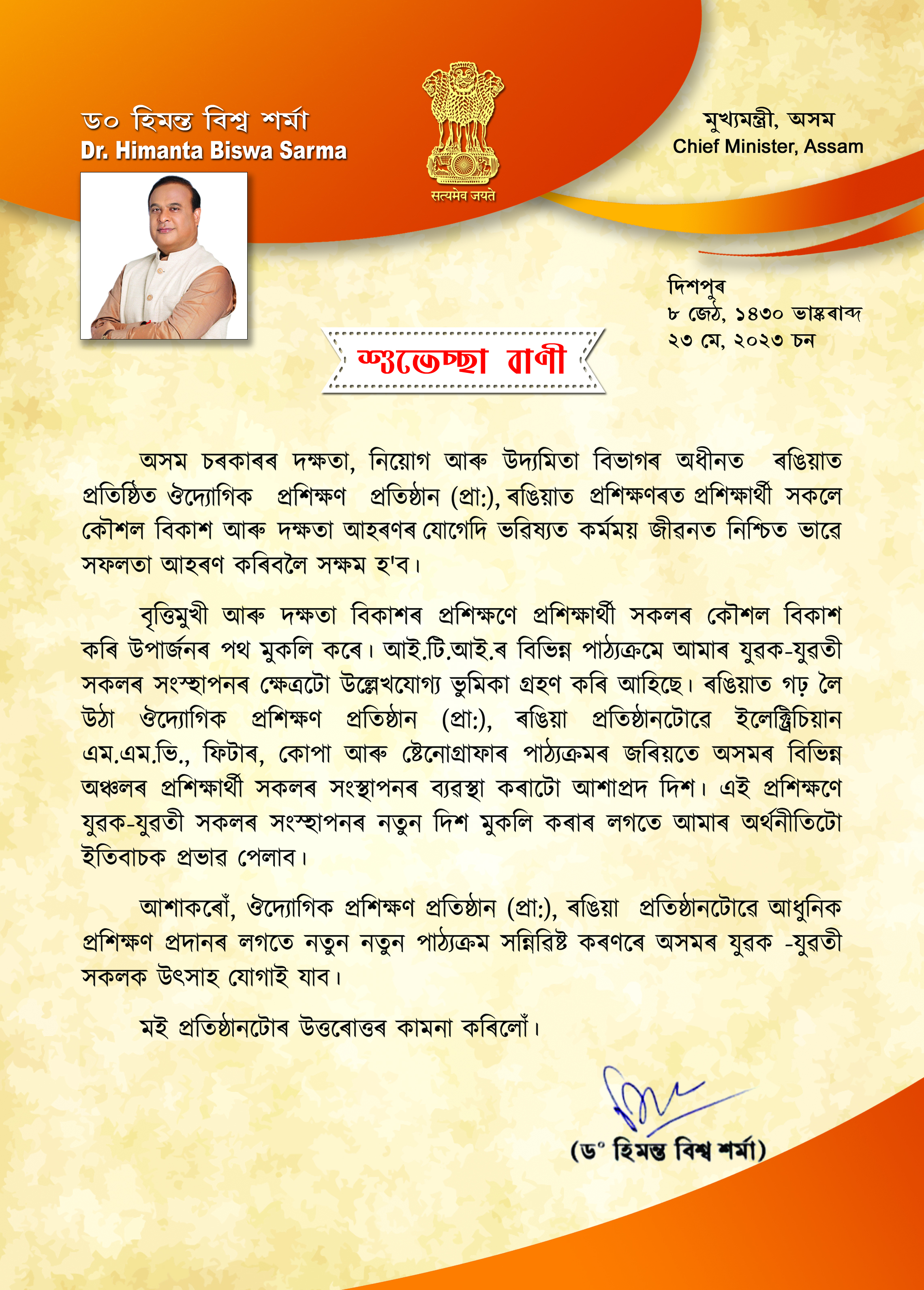 Message from Cheif Minister