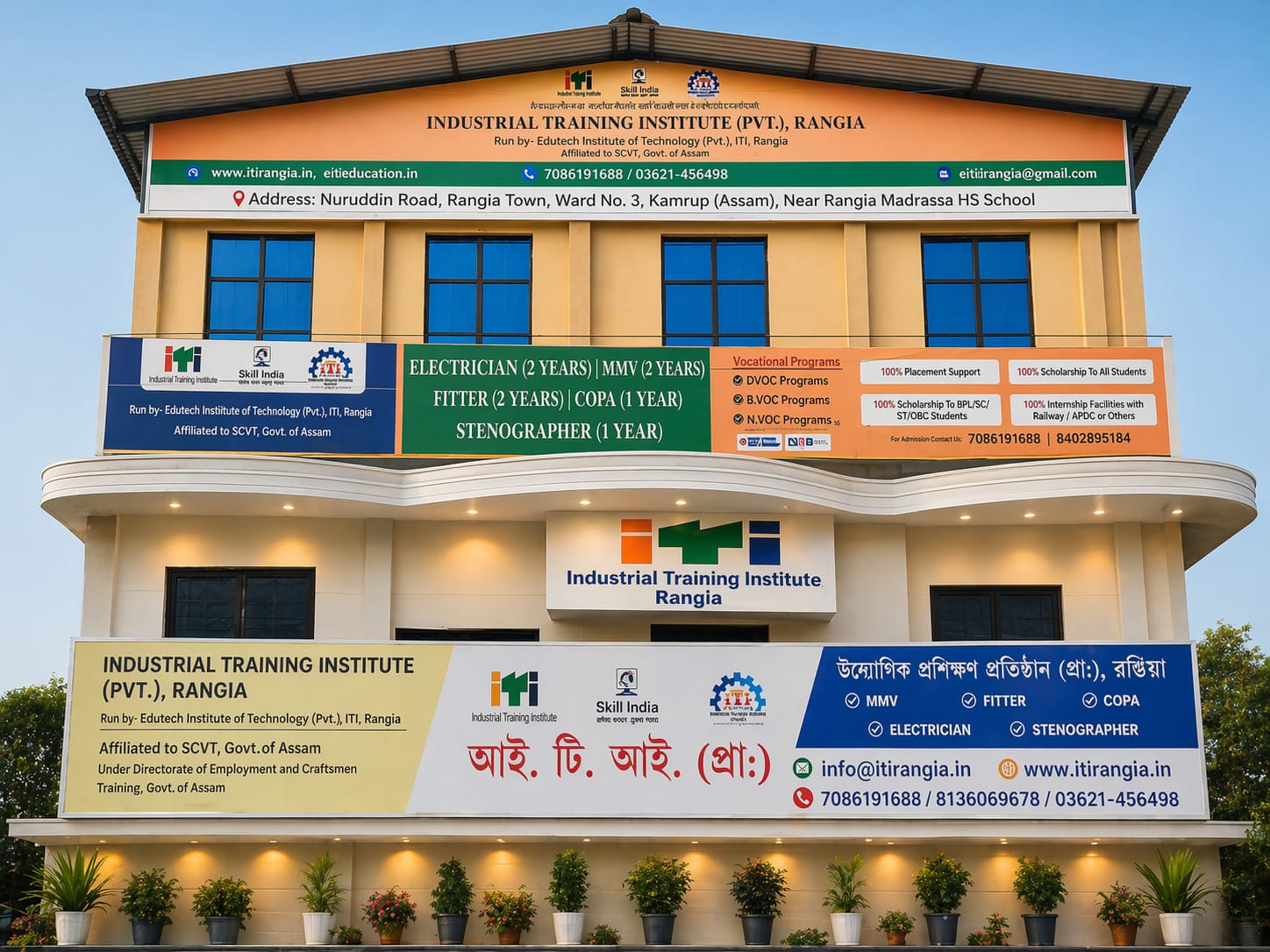 Industrial Training Institute (Pvt.) Rangia run by Edutech Institute of Technology(Pvt.) ITI, Rangia was established in year 2021 under the patronage of Founder Secretary Shri Dhrubajyoti Kalita and as a part of Edutech Institute of Technology Co-Educational Foundation. At Industrial Training Institute (Pvt.) Rangia we aim to reshape the attitude of students to facilitate them to work on jobs they fit best. We encourage creativity and sustainability. We nudge students to come with an open mind and be ready to change. The Institute, committed to Education and Innovation, started with Information Technology-Computer Education, Industrial Training Courses ,Vocational trade training program and any other personality development training program, Industrial Training Institute (Pvt. ) ..see more